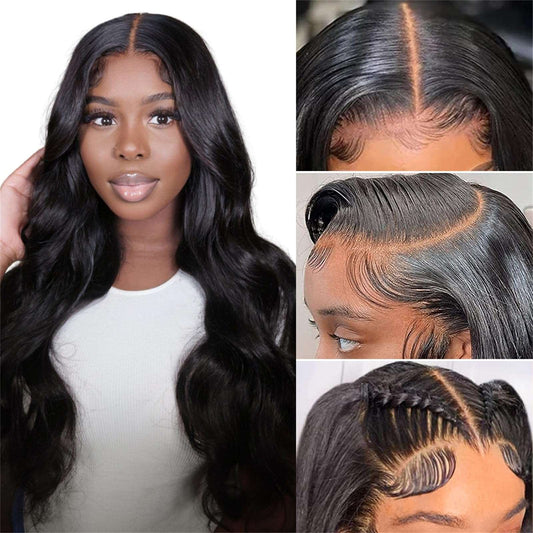 Natural Black Body Wave 13x4 Frontal HD Lace Long Wig 100% Human Hair
