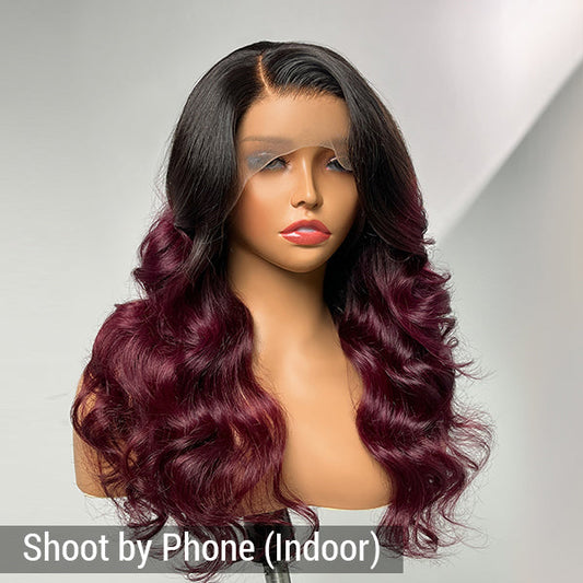 Limited Design | Alyssa Cabernet Ombre 13x4 Frontal Lace Right Side Part Long Wig 100% Human Hair