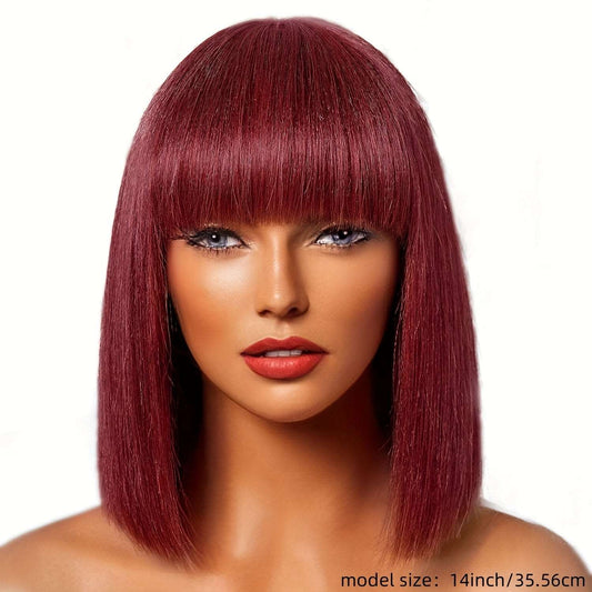 180% Human Hair Wig Burgundy Bob Machine Made Glueless Bob Wigs For Women