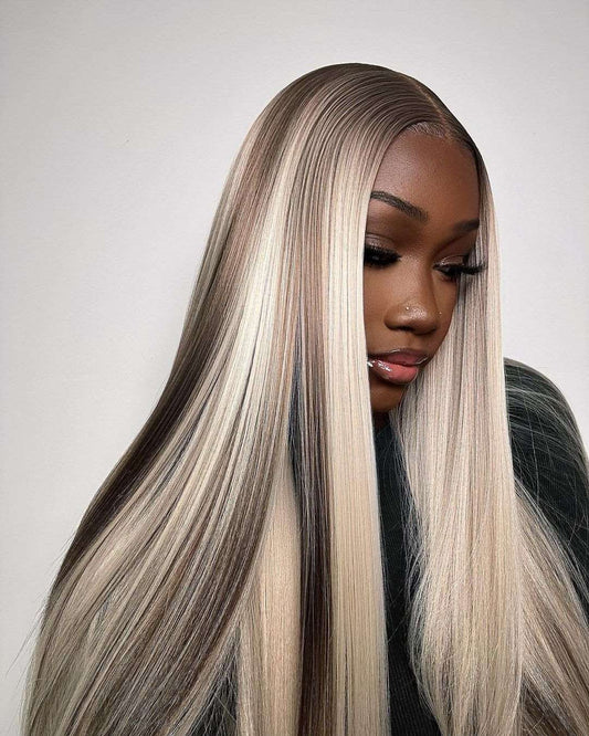 Blonde Highlights Hair Color 13x4 Lace Front Wig Long Straight Hair Wig