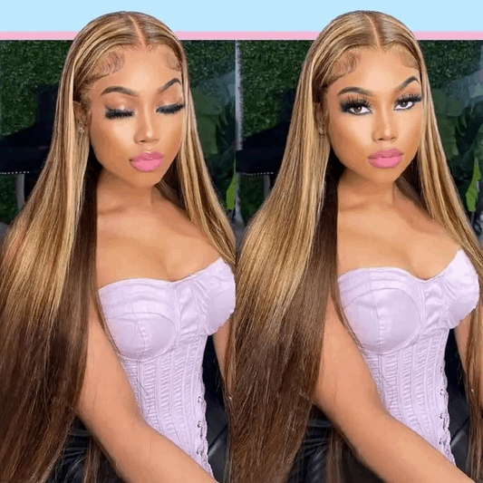 Honey Blonde Highlight Straight Pre-Cut Glueless Lace Wig Wear Go Summer Style Wig