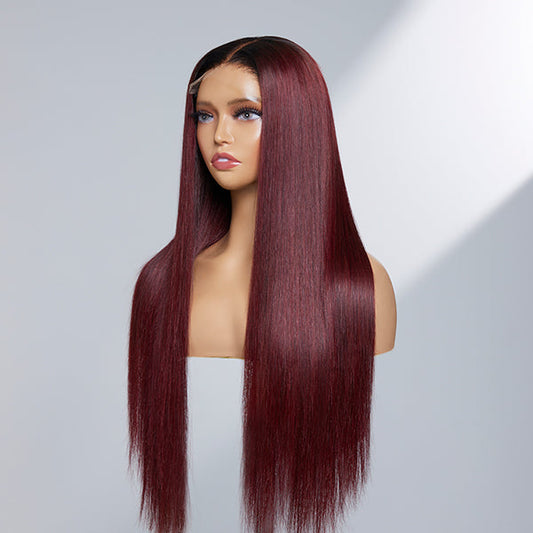 Limited Design | Patricia Burgundy Reddish Silky Straight 5x5 Closure Lace Glueless Long Wig 100% Human Hair