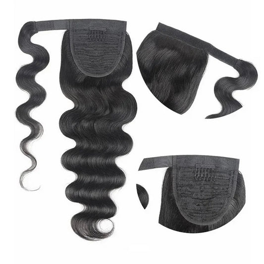 Body Wave Wrap-around Magic Velcro With Clip In Human Hair Ponytail Extension