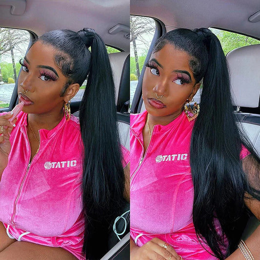 Straight Wrap-around Magic Velcro With Clip In Human Hair Ponytail Extension