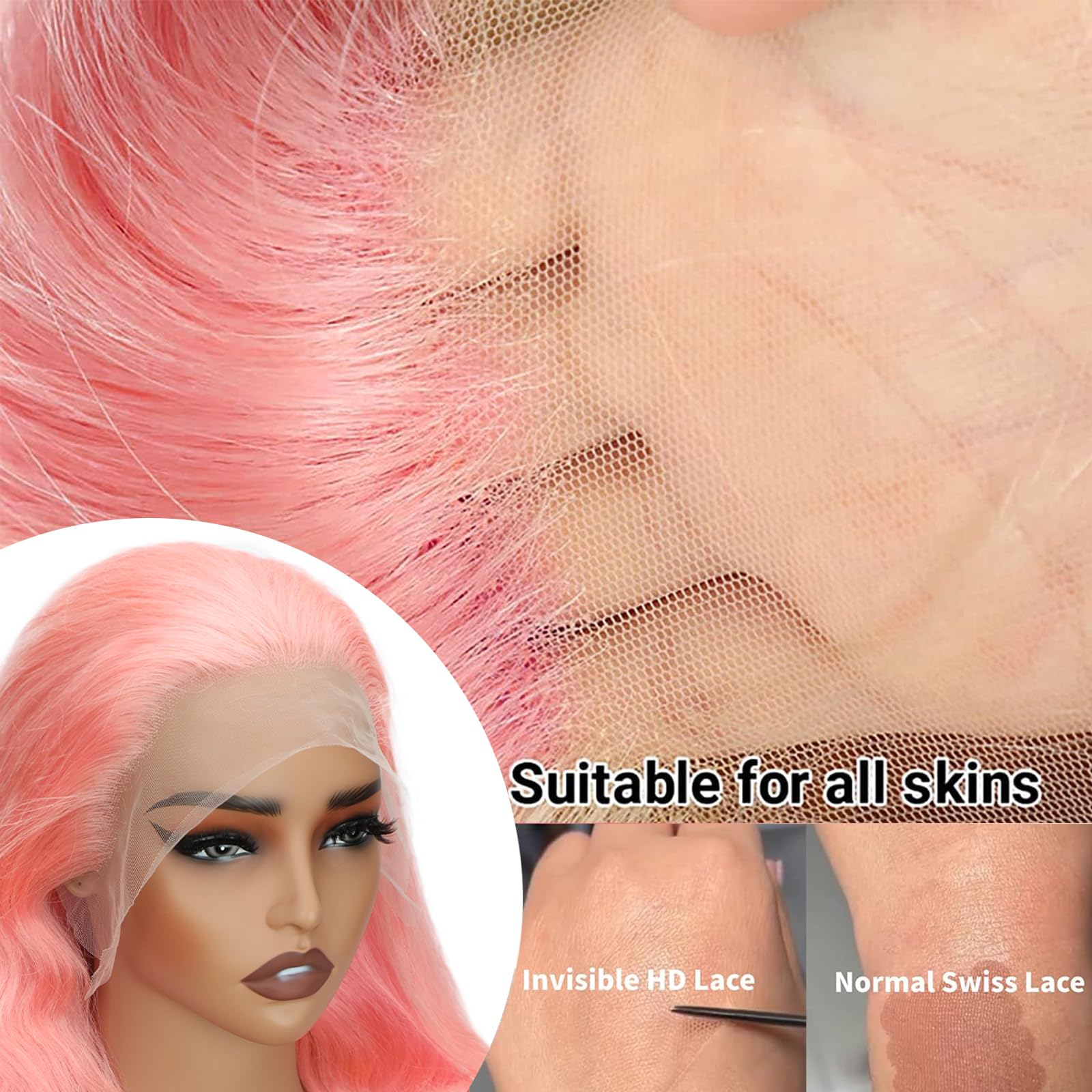 13x4 Pink Body Wave Pre-Plucked Similar 200 Density Human Hair