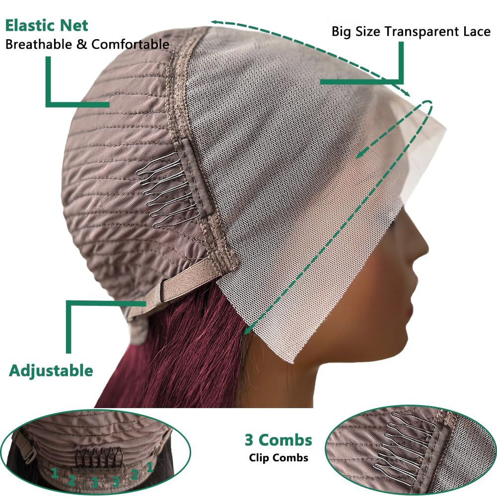 99J Burgundy 180% Density Bob Wig Human Hair 13x4 Frontal Lace Wig