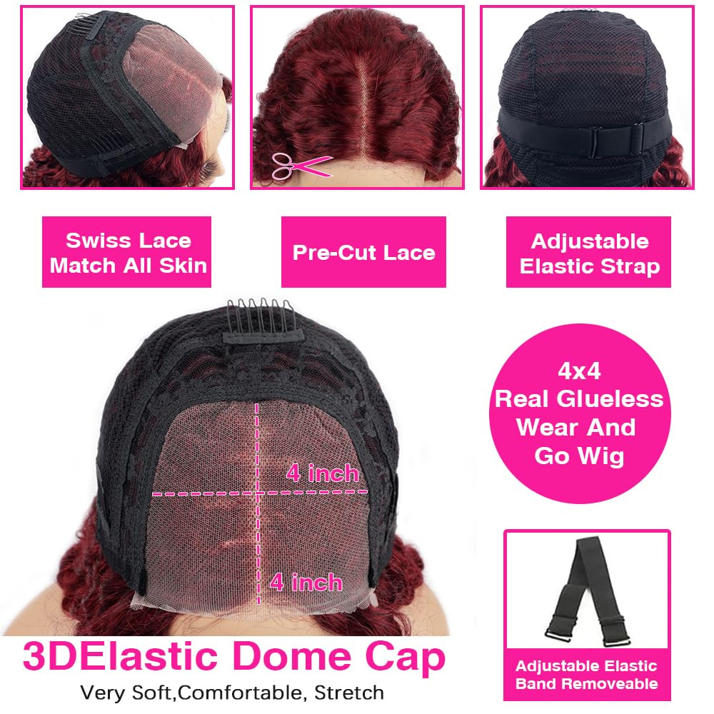 99J Wear and Go Glueless 180% Density Wig Human Hair Deep Wave Lace Closure Wig