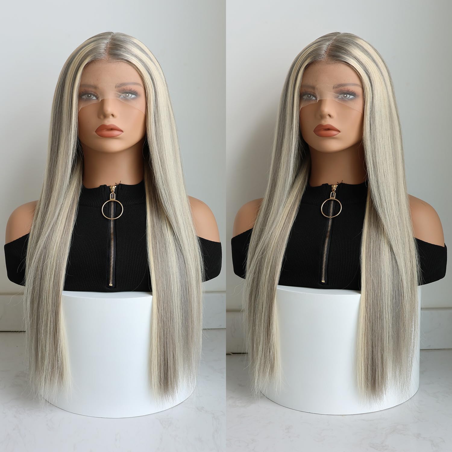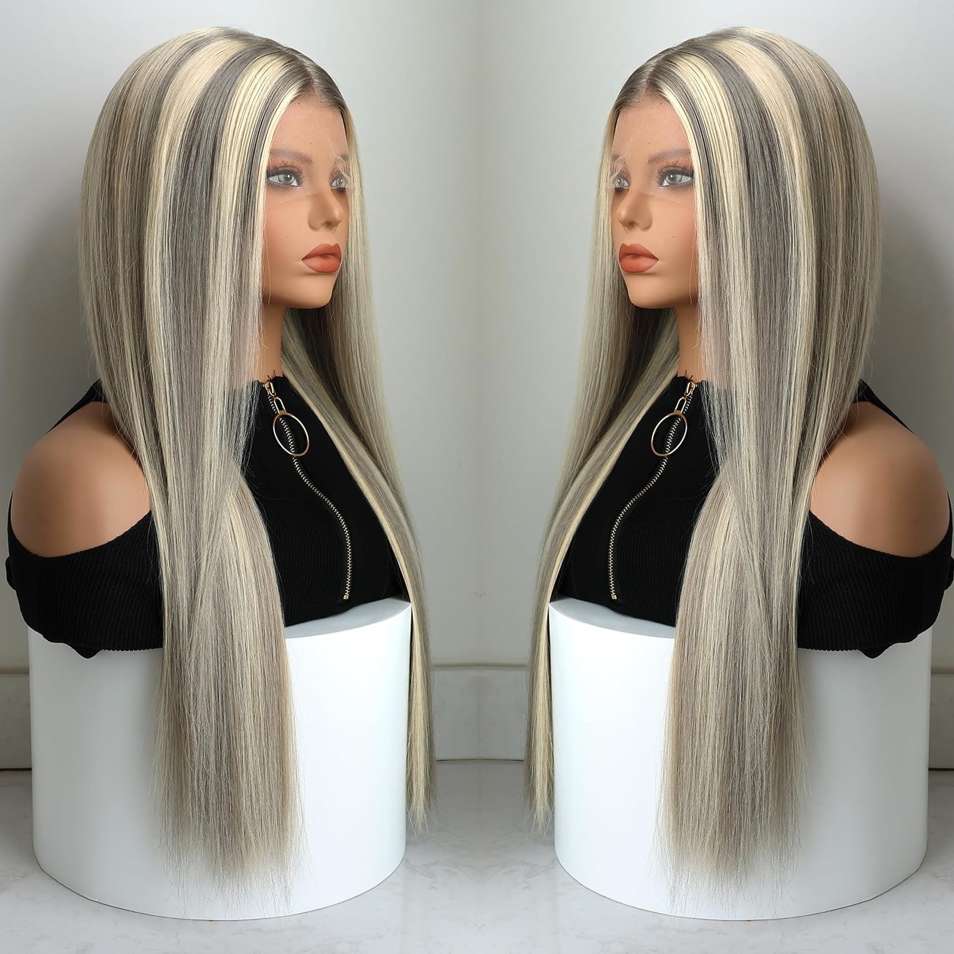Ash Blonde Grey Highlight Wig Human Hair 13x4 Straight Lace Frontal Wig Brazilian 613 Colored