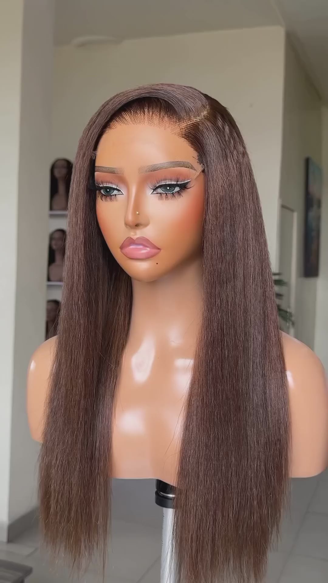 Reddish Brown Kinky Straight 13X4 Lace Front Wigs Glueless Human Hair
